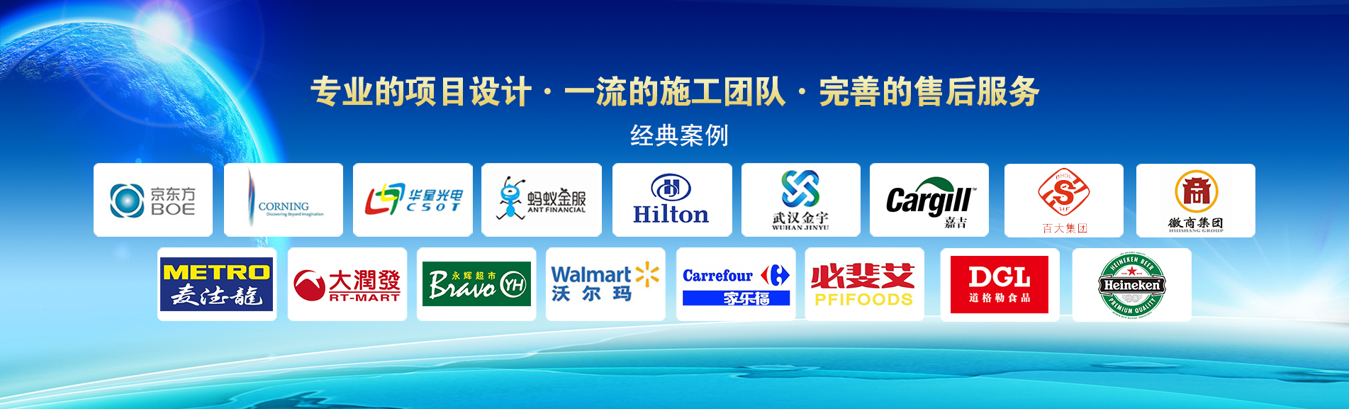 冷凍冷藏設(shè)備大型冷庫項(xiàng)目: 武漢中百物流冷庫(40000㎡)、蘇州、北京普洛斯大型物流庫(17000㎡)、沈陽佳德物流冷庫(20000㎡)、上海東航配餐物流庫(6000㎡)、杭州華商勾莊物流冷庫(24000㎡)、安徽安心蔬菜綠色食品冷庫(12000㎡)、武漢金宇冷庫(35000㎡)、必斐艾食品廠(14000㎡)、中國(guó)-東盟(百色)農(nóng)產(chǎn)品交易中心冷庫物流工程(30000㎡)、遵鐵物流冷鏈物流區(qū)建設(shè)項(xiàng)目中心冷庫物流工程(16500㎡)、長(zhǎng)沙云冷產(chǎn)業(yè)園冷庫物流工程(21000㎡)等;大型中央空調(diào)項(xiàng)目: 武漢康寧顯示玻璃廠廠房、武漢京東方模組廠房、武漢華星光電模組廠房、深圳華星光電模組廠房,杭州阿里巴巴辦公樓,舟山波音737機(jī)場(chǎng)辦公樓,南京江北能源站、上海金融大酒店等